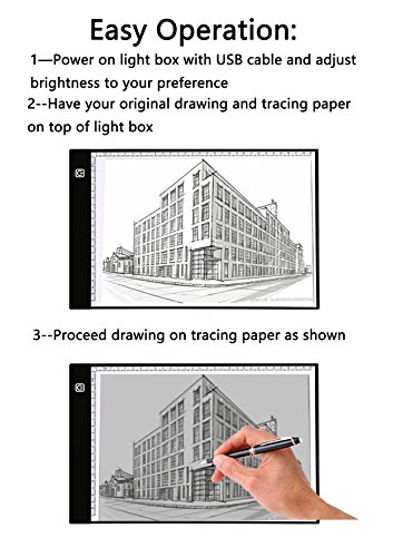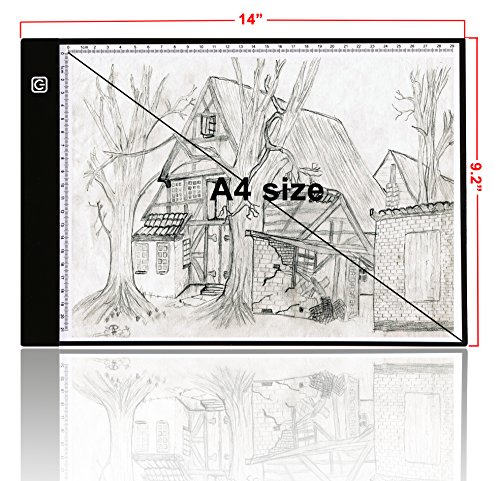 - Eyesight-protected Technology:Flicker-Free super bright eco-friendly Led.Touch sensor Switch Design , turn on/off and three step brightness control easily just by slight touch.Two ruler on pad helps better drawing,sketching,Quilting etc.