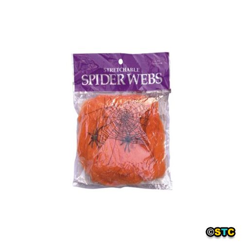 -. Feature : Package includes 0.80 ounces of orange stretchable spider web and 2 small plastic black spiders / Add this creepy and realistic webbing to your Halloween decoration! / Stretchable Spider Web also sold in pack of 6 or 12 (sold separately). Search SeasonsTrading Orange Stretchable Spider Web for details. / Stretchable Spider Web also available in white color (sold separately). Search SeasonsTrading White Stretchable Spider Web for details.