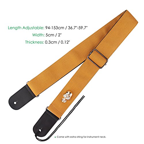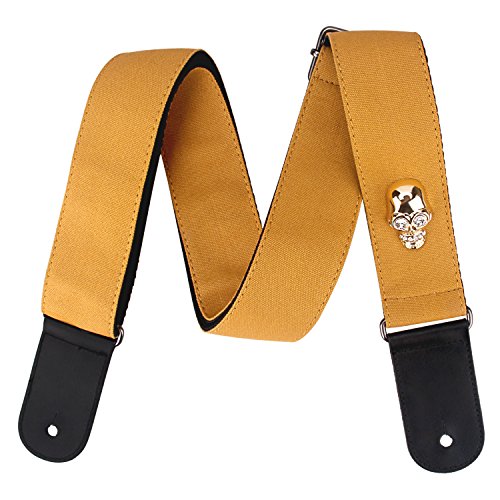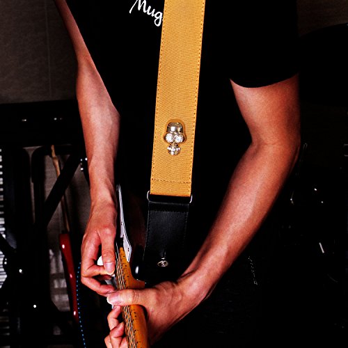 Mugig Guitar Strap for Guitar /Bass ,Adjustable Soft Cotton Skull pattern Strap with High Grade Leather Ends