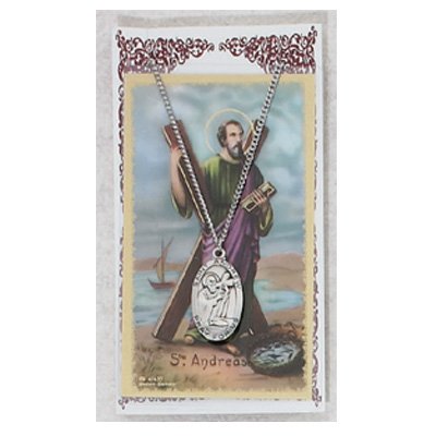-. Title : Saint Andrew 1-inch Pewter Medal Pendant Necklace with Holy Prayer Card