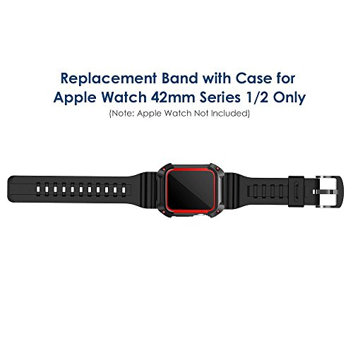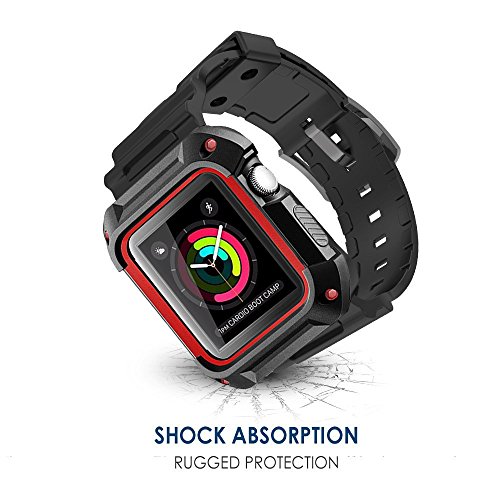 Apple Watch Case, WOOO Rugged Protective Case with Strap Bands for Apple Watch / Watch Sport / Watch Series 2 Series 1 (Screen Protector Included) (Red 42mm)