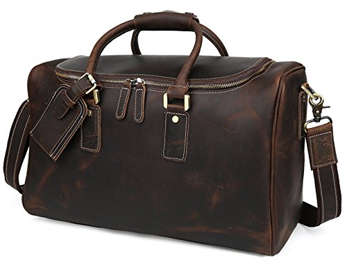 -. Brand : BAIGIO -. Department : mens -. Feature : Vintage Travel Duffel Bag. Made of vegetable tanned genuine leather material; Antique brass fittings; canvas lining / Top U-shape opening with double zippers; Hook-and-loop tote handles; Removable adjustable shoulder strap with thickened leather padding / Tablet compartment; Large zipper pocket; 3 open pockets / Come with a matching luggage tag, convenient and practical for frequent travelers / Dimensions: 16.9 x 7.9 x 10.2 inch; For overnight or 2-3 days weekends business trip -. ProductGroup : Apparel -. ProductTypeName : LUGGAGE -. Title : BAIGIO Men's Vintage Leather Travel Duffel Overnight Weekend Bag Tote Luggage