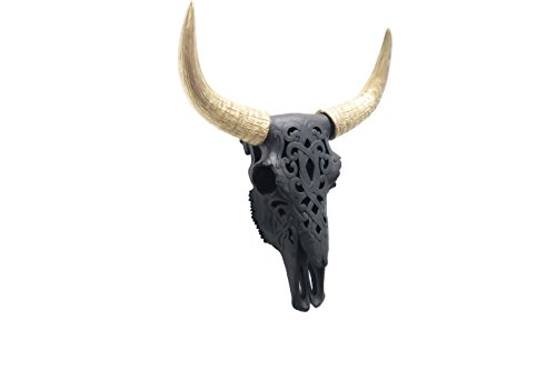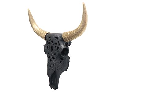 Near and Deer Carved Bison Skull Wall Mount, Black/Gold