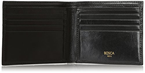 -. Binding : Accessory -. Brand : Bosca -. ClothingSize : One Size -. Color : Black -. Department : mens -. EAN : 0009309098596 -. Feature : The bi-fold has two deep well pockets for currency and slots for 8 credit cards / Two generous interior pockets and plastic inserts for your ID or photographs / Hand painted black edging finishes the edges beautifully -. IsAutographed : 0 -. Label : Bosca -. Manufacturer : Bosca -. Model : 98-59 -. MPN : 98-59 -. NumberOfItems : 1 -. PackageQuantity : 1 -. PartNumber : 98-59 -. ProductGroup : Apparel -. ProductTypeName : HANDBAG -. Publisher : Bosca -. Size : One Size -. SKU : 200011059 -. Studio : Bosca -. Title : Bosca Old Leather 8 Pocket Executive Wallet - Black -. UPC : 009309098596