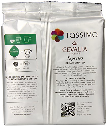 Gevalia Espresso Decaf Coffee, Extra Bold Roast, T-Discs for Tassimo Brewing Systems, 16 Count