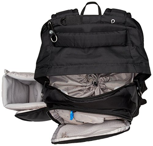 The 35-ounce bag features a padded main compartment with removable, modular Velcro dividers that can also be accessed from the side. A drawstring inner divider opens up into one 16L compartment, and features a 13-inch laptop and iPad compatible sleeve. A RFID blocking pocket that helps prevent your data (such as from e-passports and credit cards) from falling into the wrong hands is built-in.
