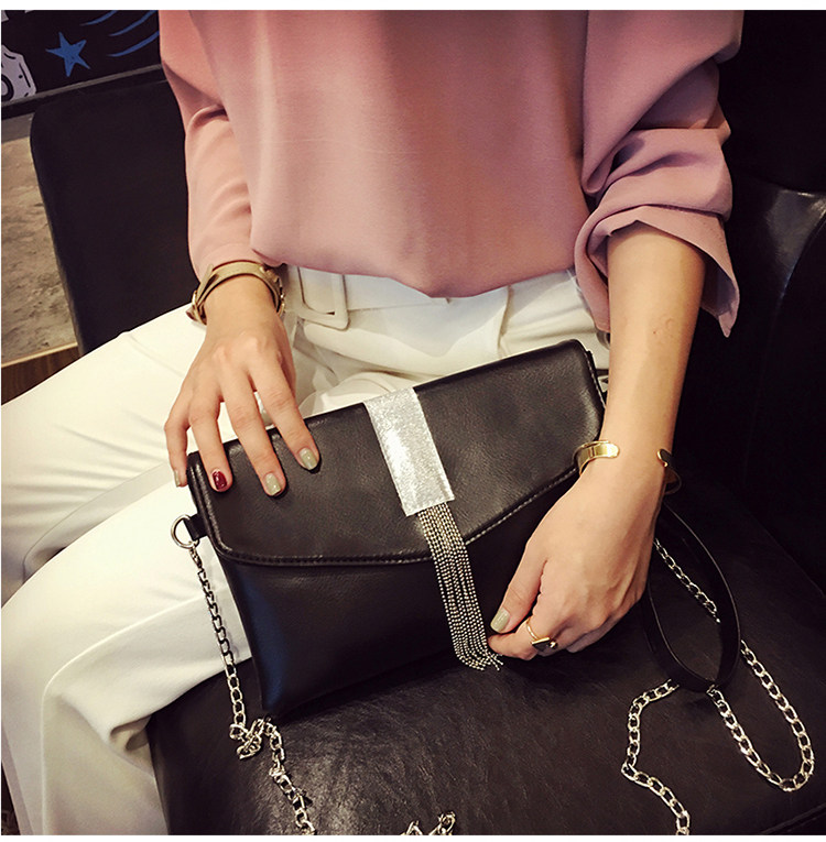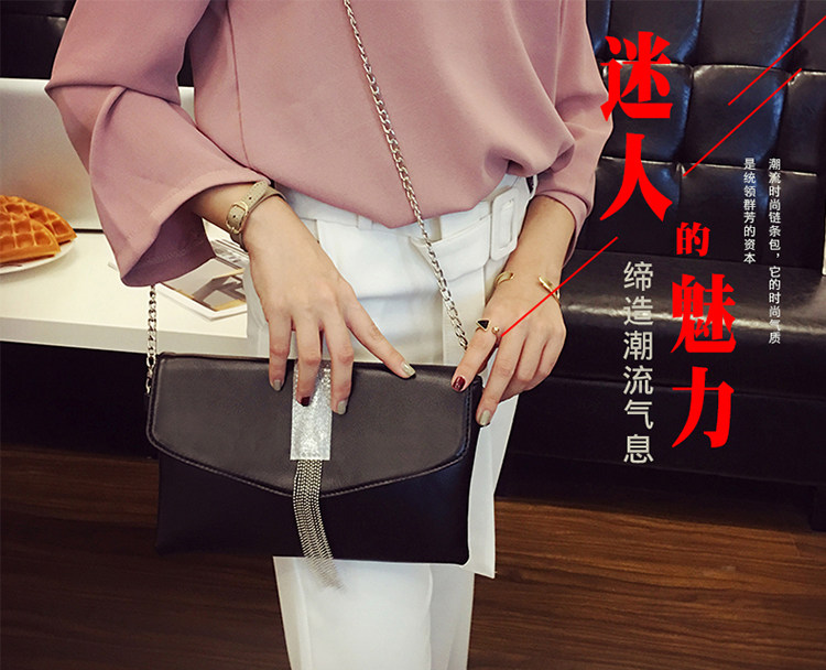新款夏季手拿包女真皮欧美牛皮镶钻晚宴包流苏信封包潮