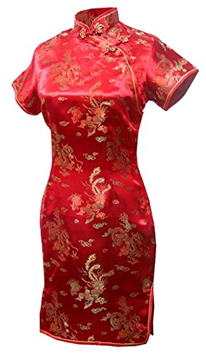 -. Title : 7Fairy レディースレッド 赤 チャイナ ドレス 結婚式 旗袍 ミニ ドラゴン 竜