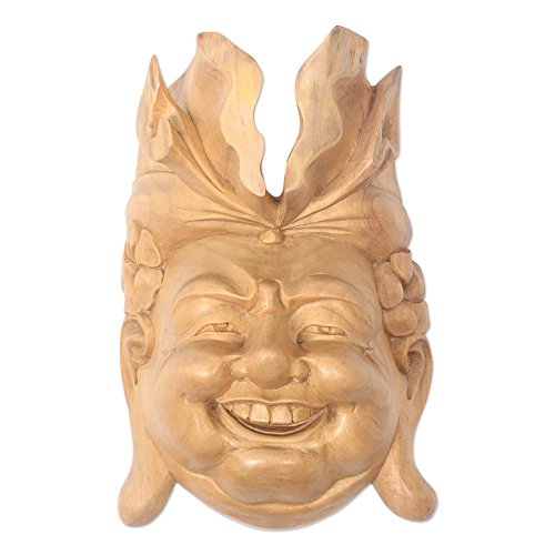 NOVICA Decorative Wood Mask, Beige 'Joyous'