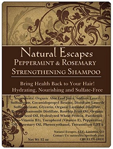 Natural Escapes Peppermint & Rosemary Shampoo! This gentle, sulfate-free shampoo will restore softness, health and fullness to hair while stimulating new hair growth!