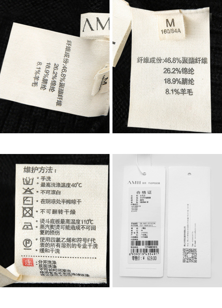 | 面料成分: | 46.8%聚酯纤维 26.2%锦纶 18.9%腈纶 8.1%羊毛 |