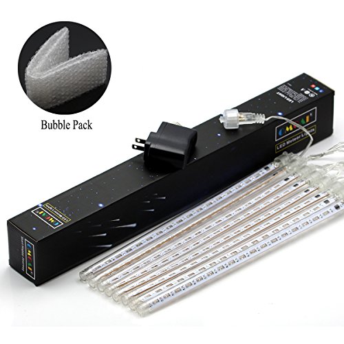 - ★ Meteor Shower Effect with Romantic Aesthetic: Led meteor shower lights, the light of every bulb turns on and out one by one in sequence and quickly just like meteor shower or falling snow in the night sky, multi-colored, very beautiful. It can be used as one, or be connected (as much as five string lights)