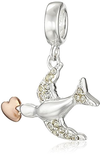 The Special Delivery charm can carry a heartfelt sentiment. Crafted from .925 sterling silver, the barn swallow carries a rose-gold plated Valentine. The wings and tail feature Crystal Swarovski pave.