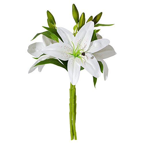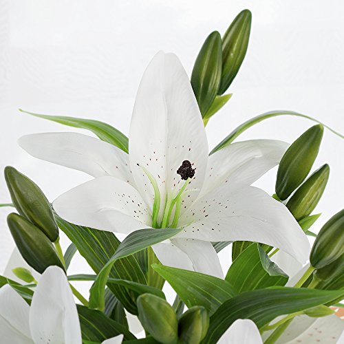 Artificial Tiger Lily Latex Real Touch Flowers Wedding Bouquets for Home Office Decoration 3pcs (White)