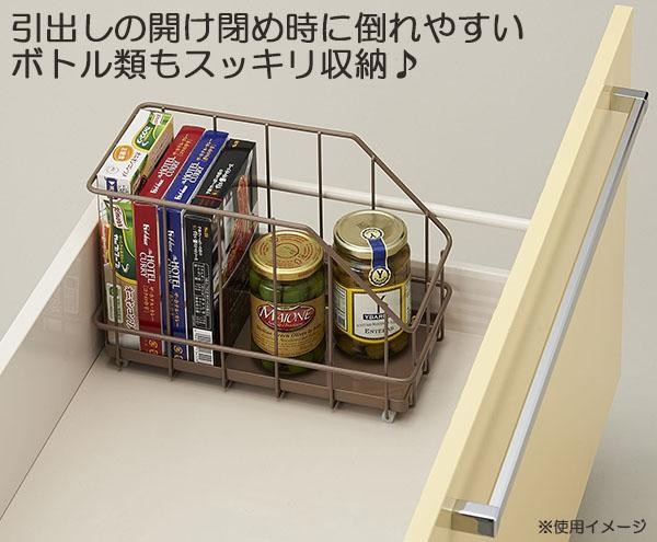 引出しタイプのシステムキッチンを便利に使うための専用収納アイテム☆ボトル類や小物類の整理に便利な幅15cmタイプのワイヤーボックスです。 |