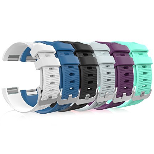 Fitbit Charge 2 Band, MoKo [6 PCS] Soft Silicone Adjustable Replacement Sport Strap Band for Fitbit Charge 2 Smartwatch Heart Rate Fitness Wristband, Wrist Length 5.11"-7.67"(130mm-195mm), Small Size.