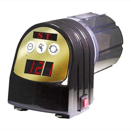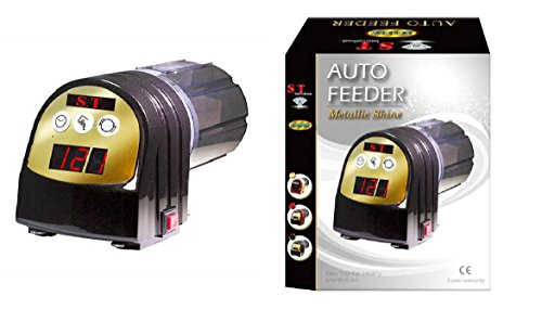 Studio : S.T. International Publisher : S.T. International Binding : Misc. Product Description This beautifully designed Auto Feeder contains a smart micro-computer that is programmed to feed every 3, 4, 6, 8, 12, 24, or 48 hours. With this non-battery operated unit, you’ll never have to worry about your fish dying from feeders run solely on batteries that diminish in power and rust from aquarium humidity. Suitable for a variety of food (pellets, flakes or freeze-dried treats), this feeder contains a special food drum that heats the food to keep it dry and prevent clogging. It offers a function to sense darkness and avoid night-time feeding and is designed for long term use. Our Auto Feeders have a beautiful metallic shine finish and come in three different colors?Black, Red, or Gold! They are CE Approved and even come with a 2 Year Warranty!. 0