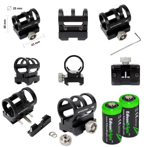 Nitecore GM02 rail mount, RSW1 pressure switch and 2 X EdisonBright CR123A Batteries included in bundle