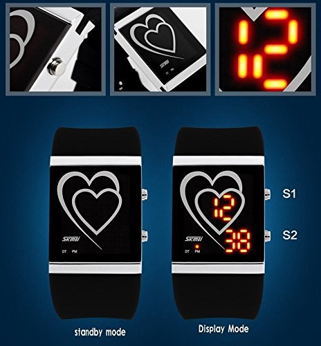 GOSASA UNISEX CREATIVE HEART-SHAPED LED WATERPROOF DIGITAL WATCH RUBBER STRAP (BLACK)