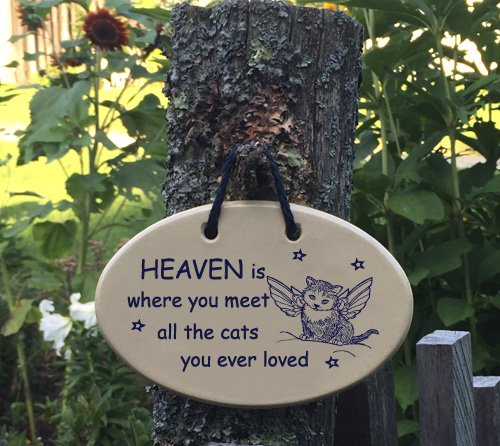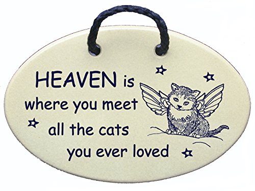 Cat memorial, HEAVEN is where you meet all the cats you ever loved. Ceramic wall plaques handmade in the USA for over 30 years.Introductory price for this new Amazon prime saying