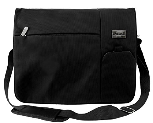 -. Brand : My Vangoddy -. Feature : Italey Everyday Laptop/Tablet Messenger Bag | Constructed with durable wrinkle less top nylon material on the outside | Padded compartments all around with Velcro strap closure to protect against bumps dents and scratches / Organized zipper pocket and slip pocket on flap ideal for small essentials such as pencils, notepads, mp3 players, mobile phone, wallet and more. | Pass through rear strap is designed to let you place the bag on any rolling lage or handle / Outer Velcro back pocket ideal for carrying a wirebound notebook, keyboard, documents, portfolios and more. | Interior Laptop / Tablet Compartment measures 15.9"L x 11.5"H x 2"W (Ideal for 12" to 15.9" Laptop/Tablets. Be sure to verify exact dimensions of your device to ensure fit) | Padded shoulder strap lets you carry your laptop and/or tablet and reduces the risk of back strain or fatigue / Approximate exterior Dimensions: 16.5"(L) x 13.5"(H) x 3.25"(W) | Weight: 27oz / Suitable for Samsung 13.3 ~ 15.6-inch Laptops (ATIV Book 2, 4, 6, 8, 9, 9 Lite) -. Label : My Vangoddy -. Manufacturer : My Vangoddy -. ProductGroup : Sports -. ProductTypeName : OUTDOOR_RECREATION_PRODUCT -. Publisher : My Vangoddy -. Studio : My Vangoddy -. Title : Italey Protective Padded Shoulder Messenger Bag [Jet Black] For Samsung 13.3 ~ 15.6-inch Laptops (ATIV Book 2, 4, 6, 8, 9, 9 Lite)