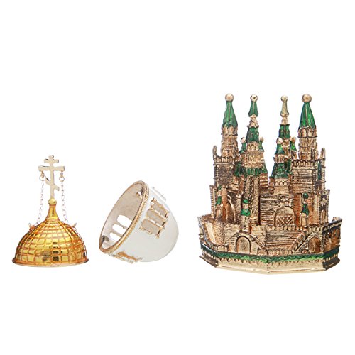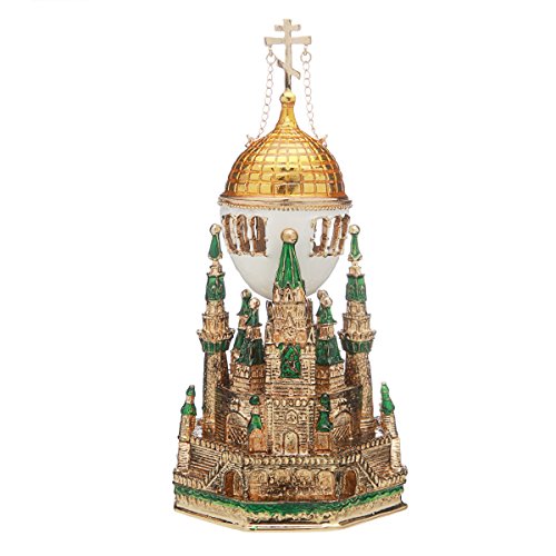 Russian Faberge Style Egg / Music Box / Trinket Jewel Box Moscow Kremlin 6.3'' green