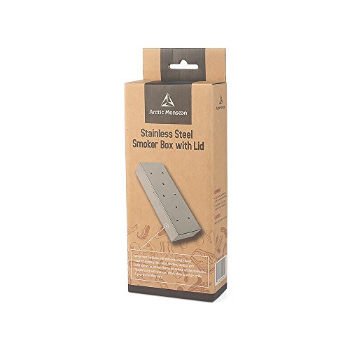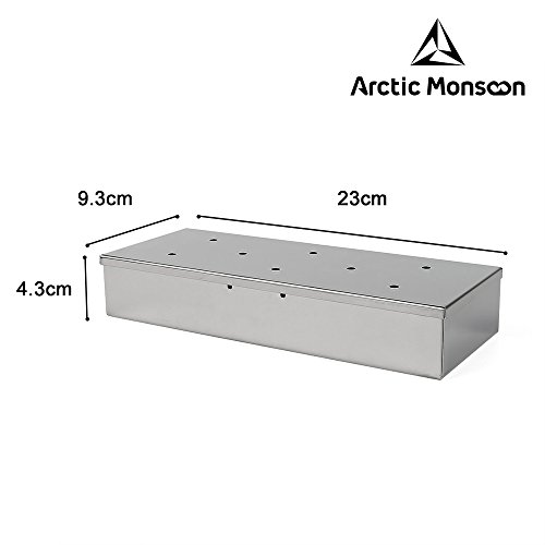 Smoker Box, Arctic Monsoon, Stainless Steel Grill Accessories with Lid, Best Grilling Utensils with Wood Chips, Silver