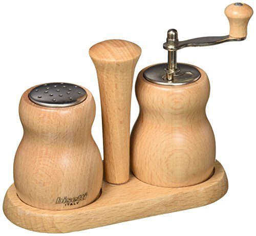 Bisetti BT-301N Cuneo Wood Pepper Mill and Salt Shaker Set, 3.94-Inch, Natural