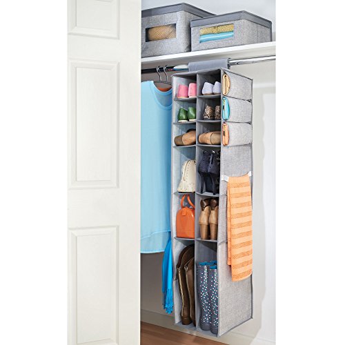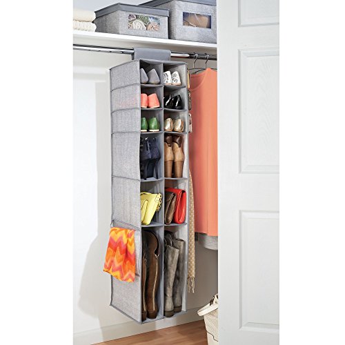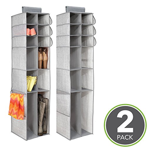 mDesign Fabric Hanging Closet Storage Organizer, for Shoes, Boots, Handbags, Clutches - Pack of 2, 16 Compartments Each, Gray