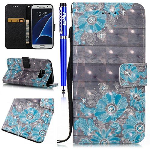 FESELE EUWLY Lederhulle fur [Samsung Galaxy S7], Diamant Bling Strass Hulle Luxus Bling Bunte Ledertasche Handytasche Flip Case Cover Samsung Galaxy S7 Lanyard Strap Glitzer Glanzend Lede