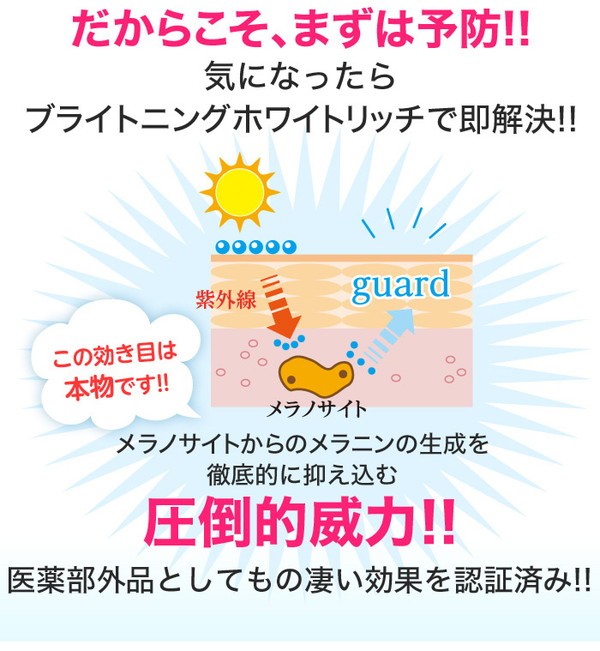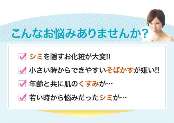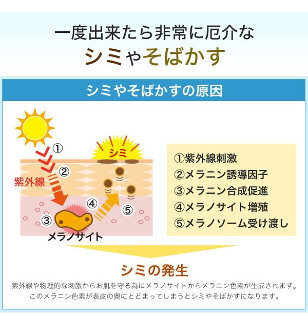メラニンの生成を抑え、しみ、そばかすを防ぐ。