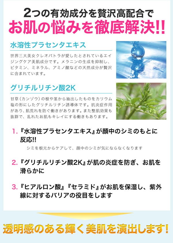 水溶性プラセンタエキス、グリチルリチン酸2K