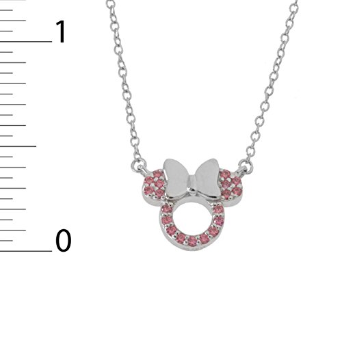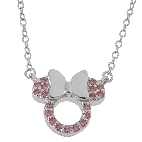 Official Licensed Disney Minnie Mouse Sterling Silver Pink Cubic Zirconia Pendant Necklace, 18"! Disney's Minnie Mouse girls pendant necklace is finished in sterling silver, this necklace is complete with an 18 inch chain with a spring ring clasp. Disney Minnie Mouse Sterling Silver Pink Cubic Zirconia Pendant Necklace comes gift boxed making for a perfect gift for any women including your daughter, sister, granddaughter, niece or any loved one.Feature