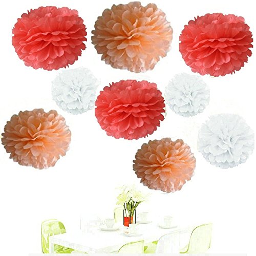 Since ®18Pcs of 8" 10" 14" 3 Colors Mixed Coral White Peach Tissue Paper Flowers,Tissue Paper Pom Poms, Wedding Party Decor, Pom Pom Flowers,Tissue Paper Flowers Kit,Pom Poms Craft,Pom Poms Decor