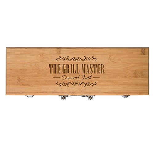 Personalized Barbecue gifts for men for Custom engraved gifts for dad The Grill Master Gift Bamboo 3pc Barbecue tools and accessories Gift set for Outdoor grills (Bamboo)