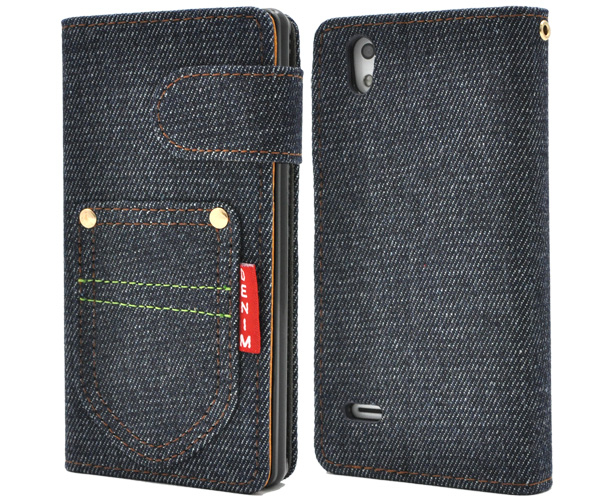 デニムデザインのMONO MO-01J用スタンドケースポーチ。