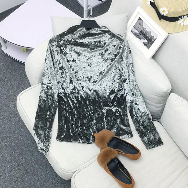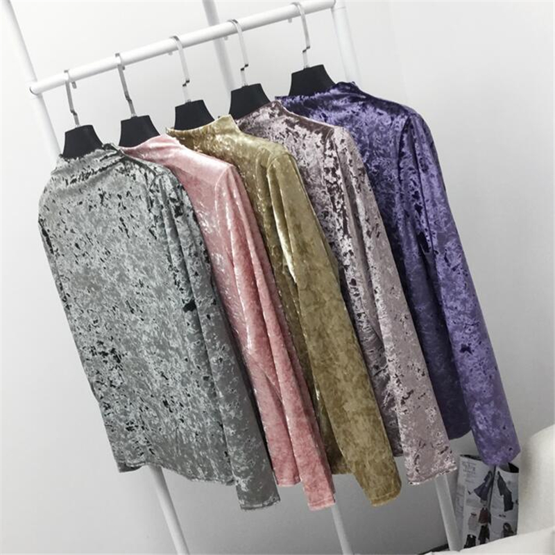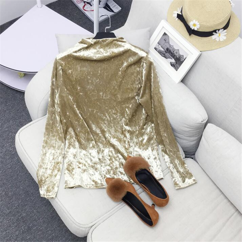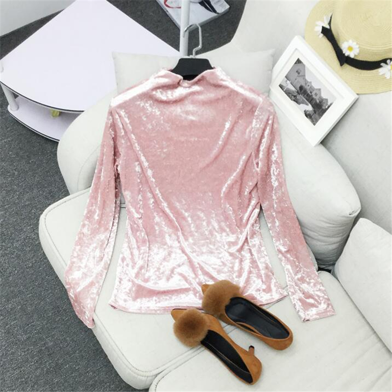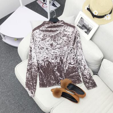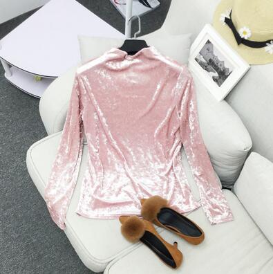 Product Name :New Fashion women velour velvet shirts long sleeve sexy stand collar solid pink velvet tees tops vintage slim women top,MM0245