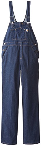 Carhartt's comfortable and versatile denim bib overall is constructed of 10.5-ounce, 99% cotton with 1% spandex for stretch and comfort. The overall is unlined making it a great choice in warmer weather. It features two large lower-front pockets and two reinforced back pockets, as well as ruler pocket and two utility pockets. The main seams are triple stitched for extra durability.Feature
