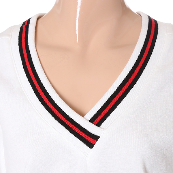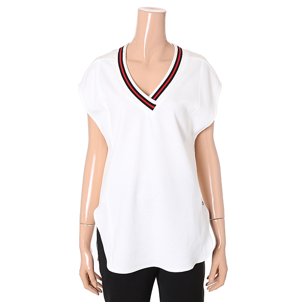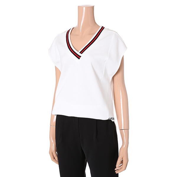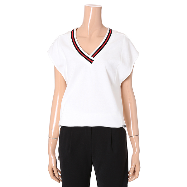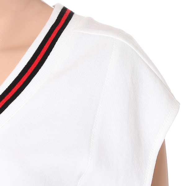 넥라인 리브소재와 컬러 배색으로 포인트를 준 브이넥 슬리브리스