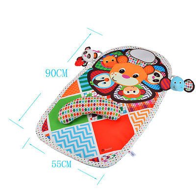 -. Feature : Product Description peek & play - Tummy Time Activity toy Mat panda,giraffe,elephant / By encouraging baby to explore, reach, pull and lift, our larger toys help to develop baby's motor skills by using larger muscles. The hidden features on each toy also help to develop baby's fine motor skills by using precise movement and interaction. / Technical Information: Age Suitability: Birth+ Size: 90x55cm / Why Buy Me: - This brightly coloured cushion helps to encourage baby to lift their head, strengthen their neck, upper arm and chest muscles. - Includes a fold out rug so that baby can perform tummy time comfortably on most floor surfaces. - Hidden features encourage baby to explore. / Features & Benefits: - Packed full of fun activities including a peek-a-boo mirror and a baby safe mirror. - Helps encourage baby's healthy development through physical play. - Helps to develop gross and fine motor skills through using larger muscles and precise movement. Safety: - Do not place inside a cot where a child could use this product as a foothold - Do not use this product as support - Please remove the packaging and its attachments before giving this toy to a child