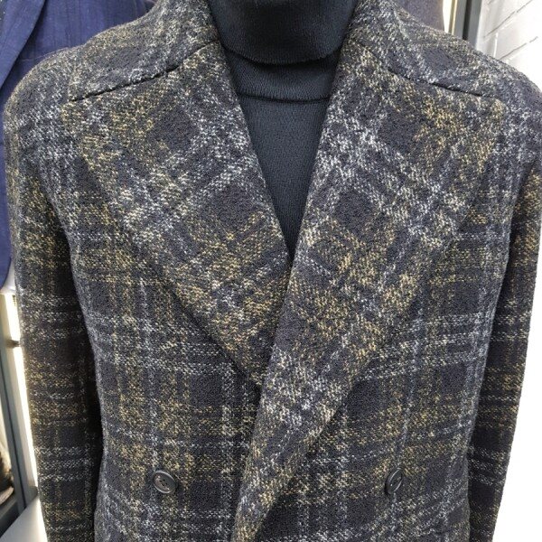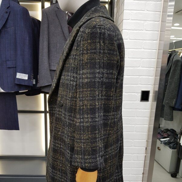 드랍숄더로 나온 체크패턴의 더블코트.넓은 숄더와 더블라펠로 클래식함과, 체크패턴의 캐쥬얼이 함께 겸비한 오버핏더블 코트입니다.