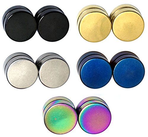 -. Title : 5 Pairs Circle Magnet Clip On Fake Cheater Illusion Plugs Stainless Steel Unisex Earrings Set