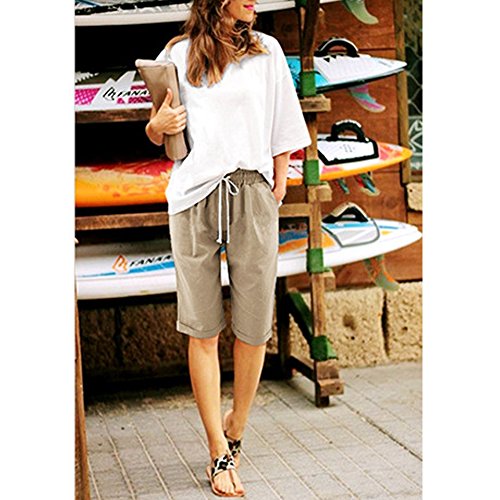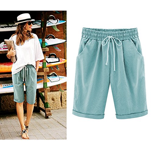 -. Title : Sobrisah Women's Casual Drawstring Elastic Waist Knee Length Curling Bermuda Shorts