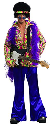 -. Binding : Apparel -. Brand : Rubie's -. Color : Multi -. Department : mens -. Feature : Purple daze costume includes purple bell bottom pants, psychedelic shirt, and headband / Guitar, sunglasses, and other accessories shown sold separately / Standard fits up to a 42-inch chest / Rubie's has enough Hippie costumes to create your own commune / Rubie's has costumes and accessories in sizes and styles for everyone, from babies to children to adults, and even the family pet -. IsAdultProduct : 0 -. Label : Rubies Costumes - Apparel -. Manufacturer : Rubies Costumes - Apparel -. Model : 888680 -. PackageQuantity : 1 -. ProductGroup : Apparel -. ProductTypeName : ADULT_COSTUME -. Publisher : Rubies Costumes - Apparel -. Studio : Rubies Costumes - Apparel -. Title : Rubie's Men's Purple Daze Hippie Costume