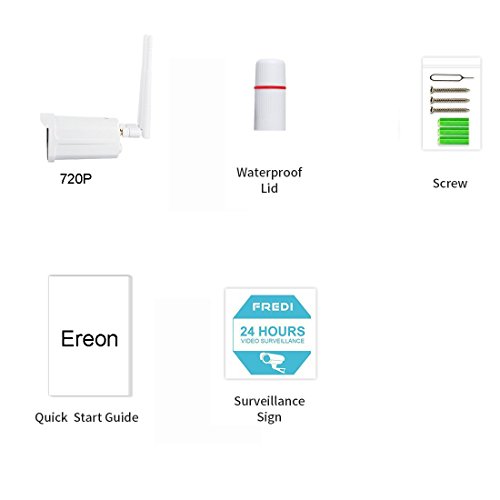 -. Feature : ★Keep Security for Home: 720P Full HD 24-hour monitoring, built-in 4 large infrared lighting, New design style,great vision of a wide range of 185 degrees view, high-definition images so that anytime, anywhere to see the situation at home. Apply to the back garden, the door, the garage, the house around. / ★IP66 Waterproof Function: This weatherproof camera can be placed indoors and outdoors. No matter what Blizzard, thunder, typhoon, Ereon can protect your home. New design style. / ★Easy Connect Phone and Windows PC: You can transfer videos directly to your smartphone, tablet, or Windows PC with easy quick wifi setup, via iOS or Android devices by Wi-Fi settings. It can support up to 64G SD card.SD card is not included.Check in your home or office wherever you have an internet connection. / ★Mobile Phone Reminder Function: With arm and disarm switch, alarm tone prompt. motion alert via email& push notification simultaneously,motion-triggered video recording and snapshot to app or micro SD card.Let the thief away from your home, you can easily go out to play. / ★Quality Guaranteed : Highly recommend from you is our the most important treasure.we support within 30 days return warranty and technical support.if you have any questions before or after purchase, please freely to contact us.