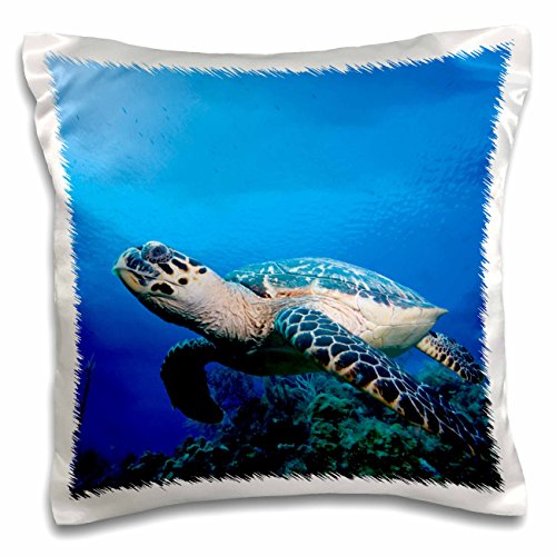 3dRose Cayman Islands, Hawksbill Sea Turtle and coral reef -CA42 PSO0093 - Paul Souders - Pillow Case, 16 by 16-inch (pc_74849_1)