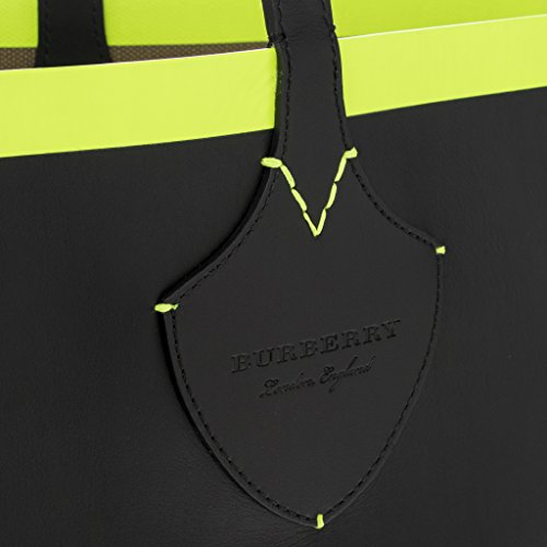 Product Description Burberry Women's Medium Giant Reversible Tote in Canvas and Leather: A reversible tote in Canvas check bonded to leather. Neon sealed seams add a clash of color to the unisex bag. 56% jute, 44% cotton bonded to 100% calf leather. Trim: 100% calf leather. Hand-painted edges. Embossed Burberry lettering at strap tabs. Made in Italy. Approximately: 12.2a€ H x 20.1a€ W x 6.1a€ D. 0
