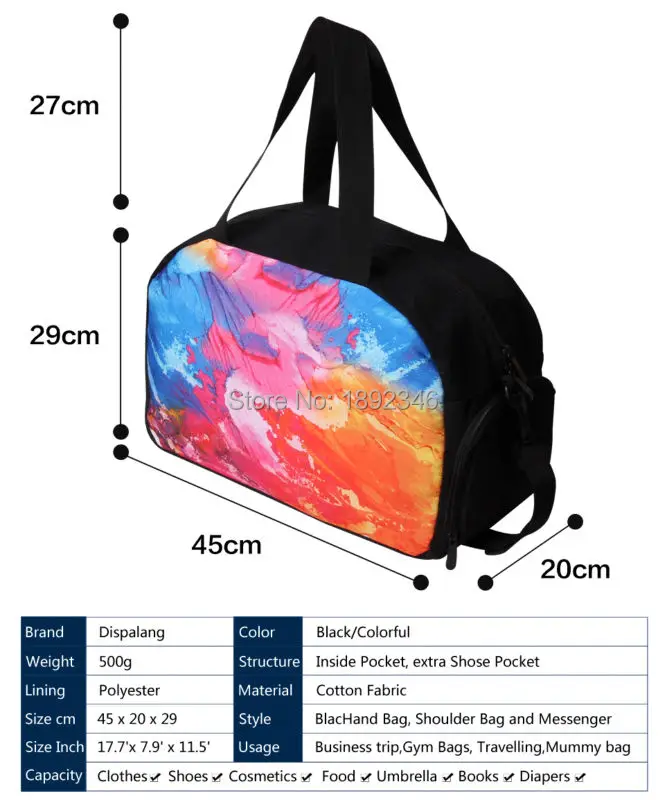 Usage:Travel bag/Yoga bag/Diaper bag/gym bag