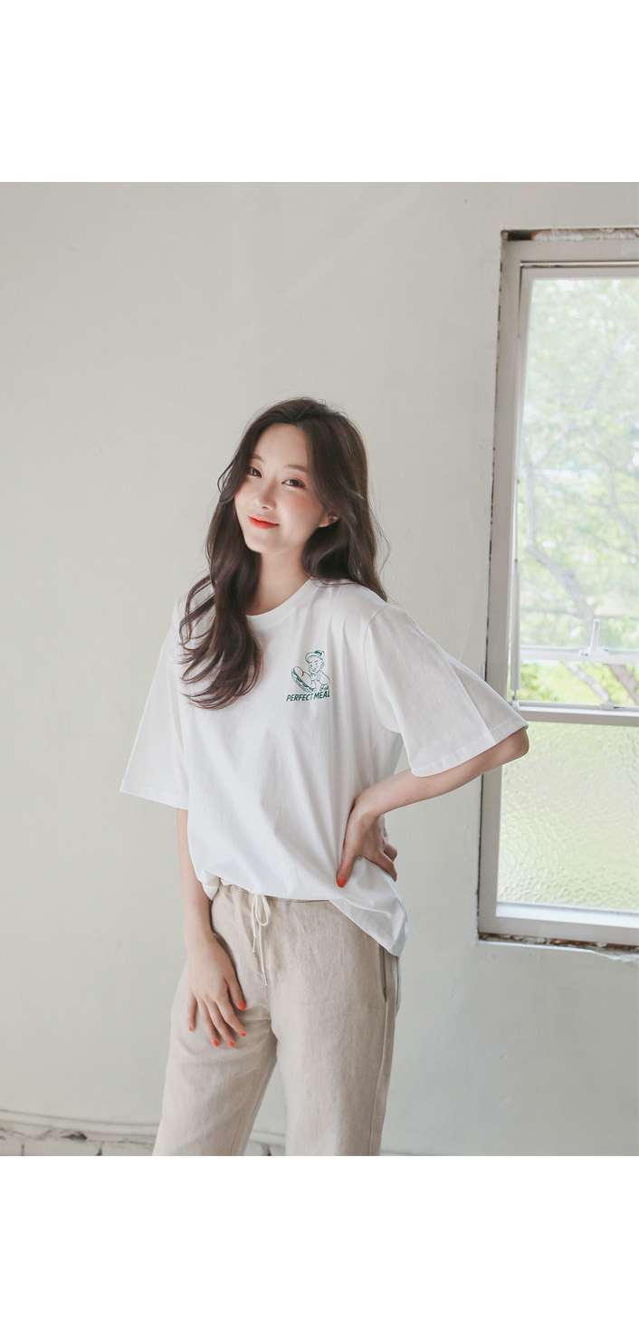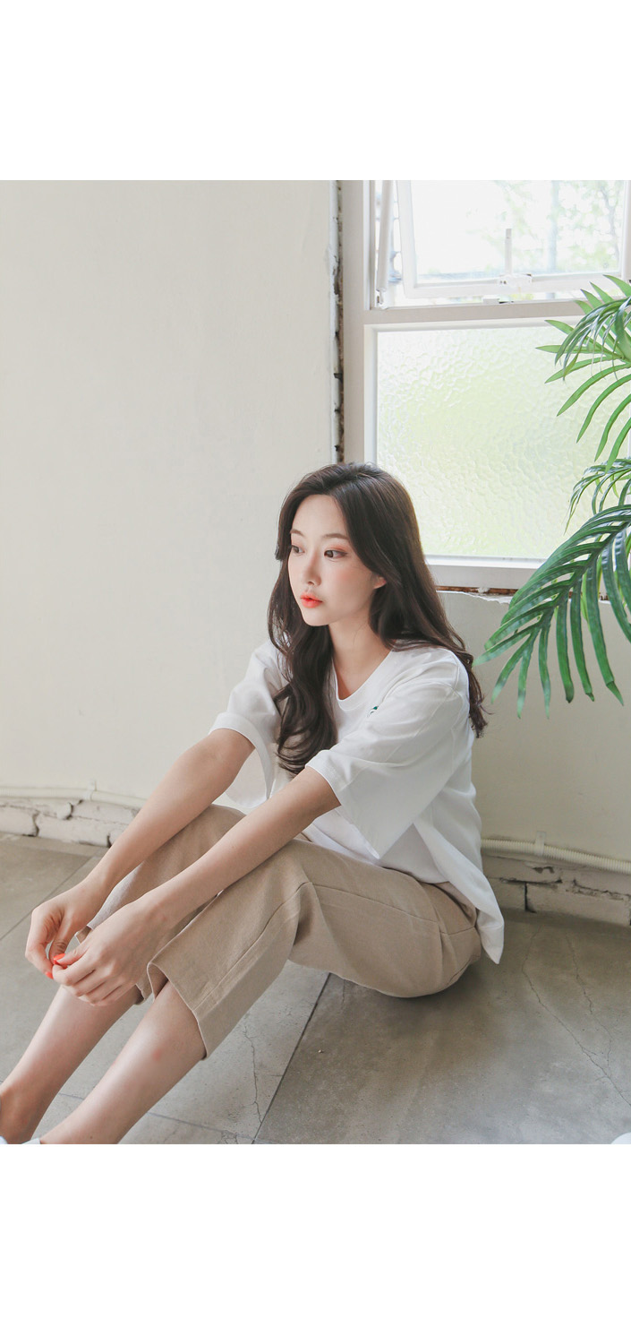 가슴부분의 포인트로 캐주얼 무드를 연출해주는 티셔츠~