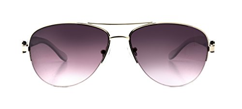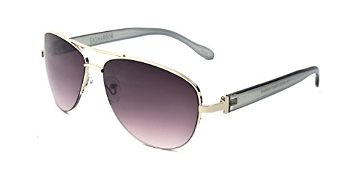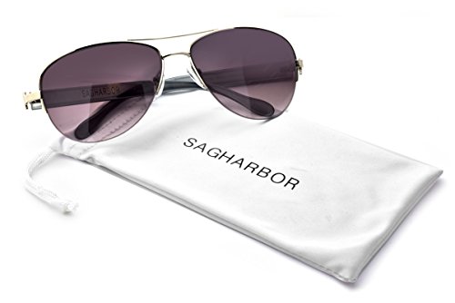 Sag Harbor Women's Aviator Sunglasses, Silver Metal Frame with Crystal Blue Temple, APG Smoke Lens, 60.5mm